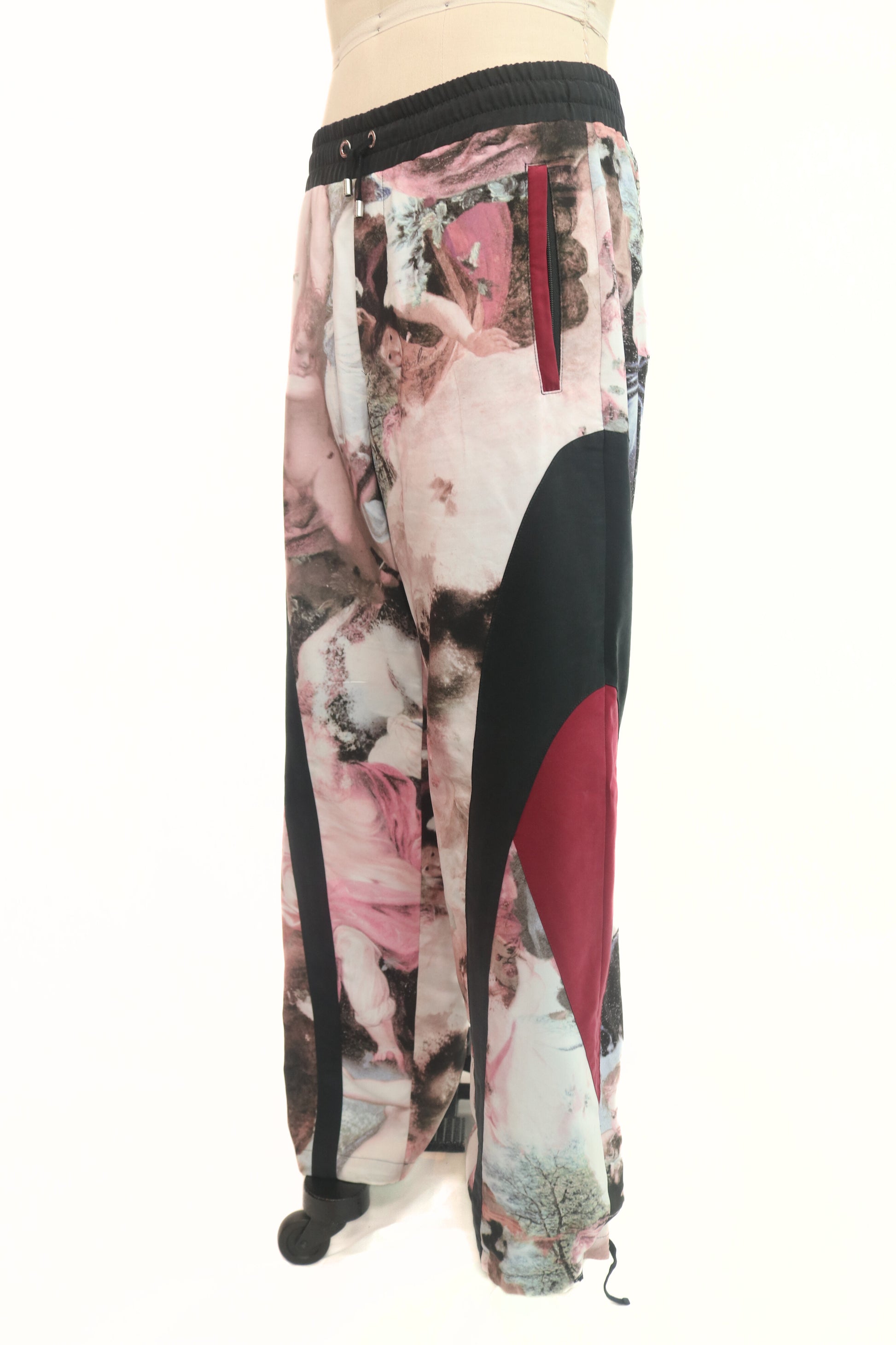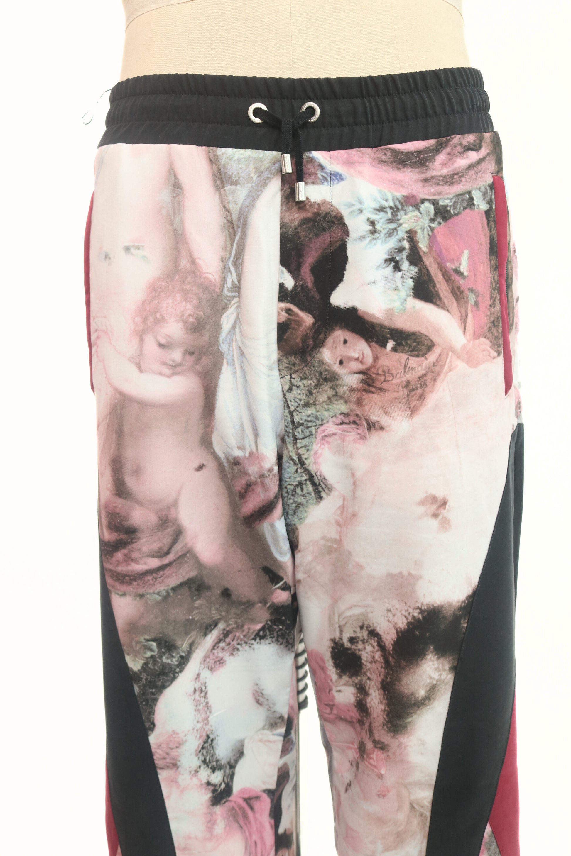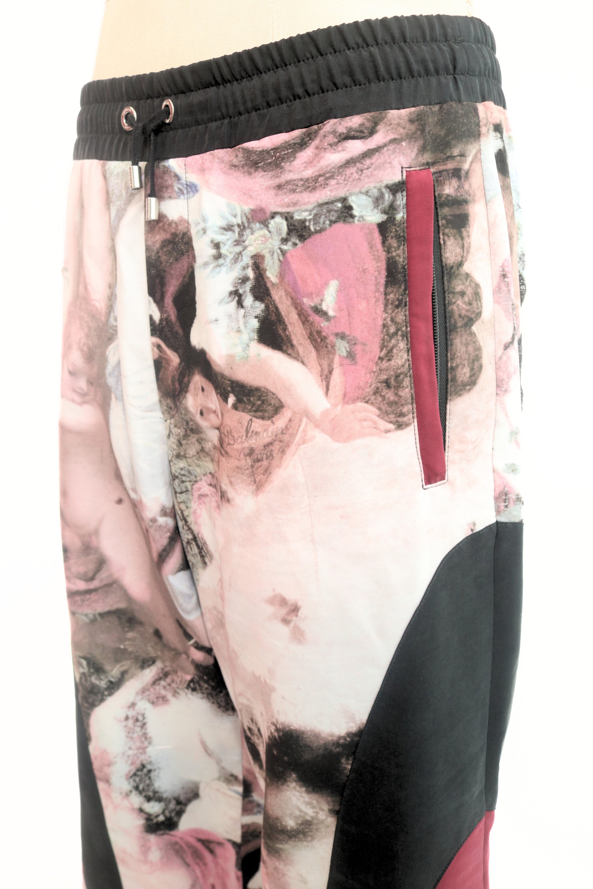 Expertly crafted in Italy, the Balmain Renaissance Track Pants offer a unique fusion of style and comfort. The black, burgundy, and graphic design create a bold look, while the polyester and elastane blend ensures a perfect fit. Gently worn and in mint condition, these track pants are a must-have for any fashion-forward individual.