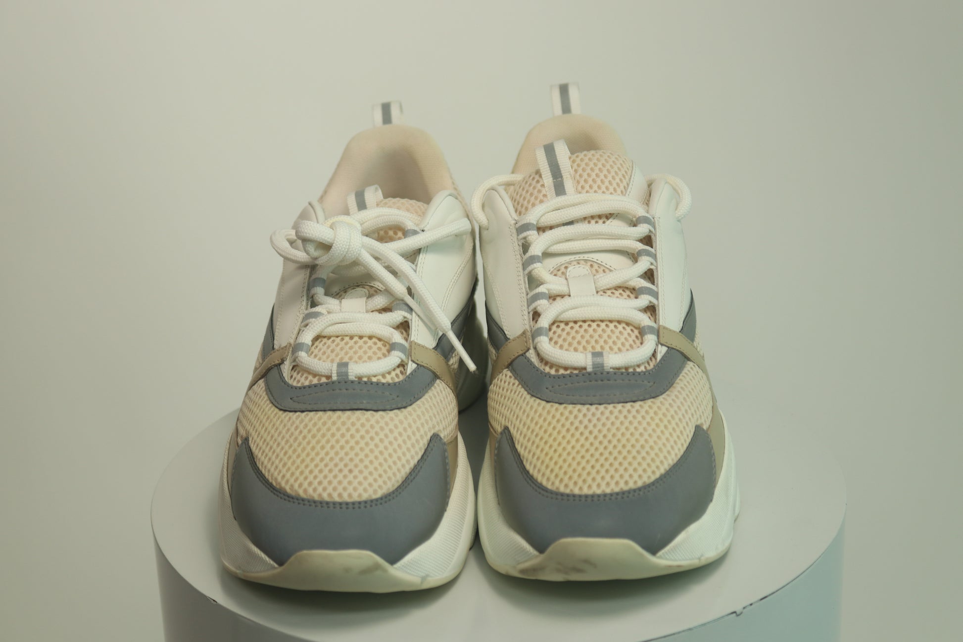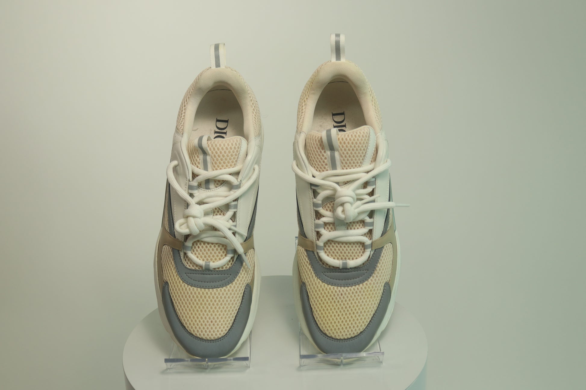 These Dior Chunky Sneakers, designed for men and crafted in Italy, offer both style and quality. The light beige and off white color combination makes them versatile and suitable for various occasions. With a rating of 46 and in great condition, they provide a comfortable fit for standard wear. Elevate your sneaker game with these expertly crafted Dior sneakers.