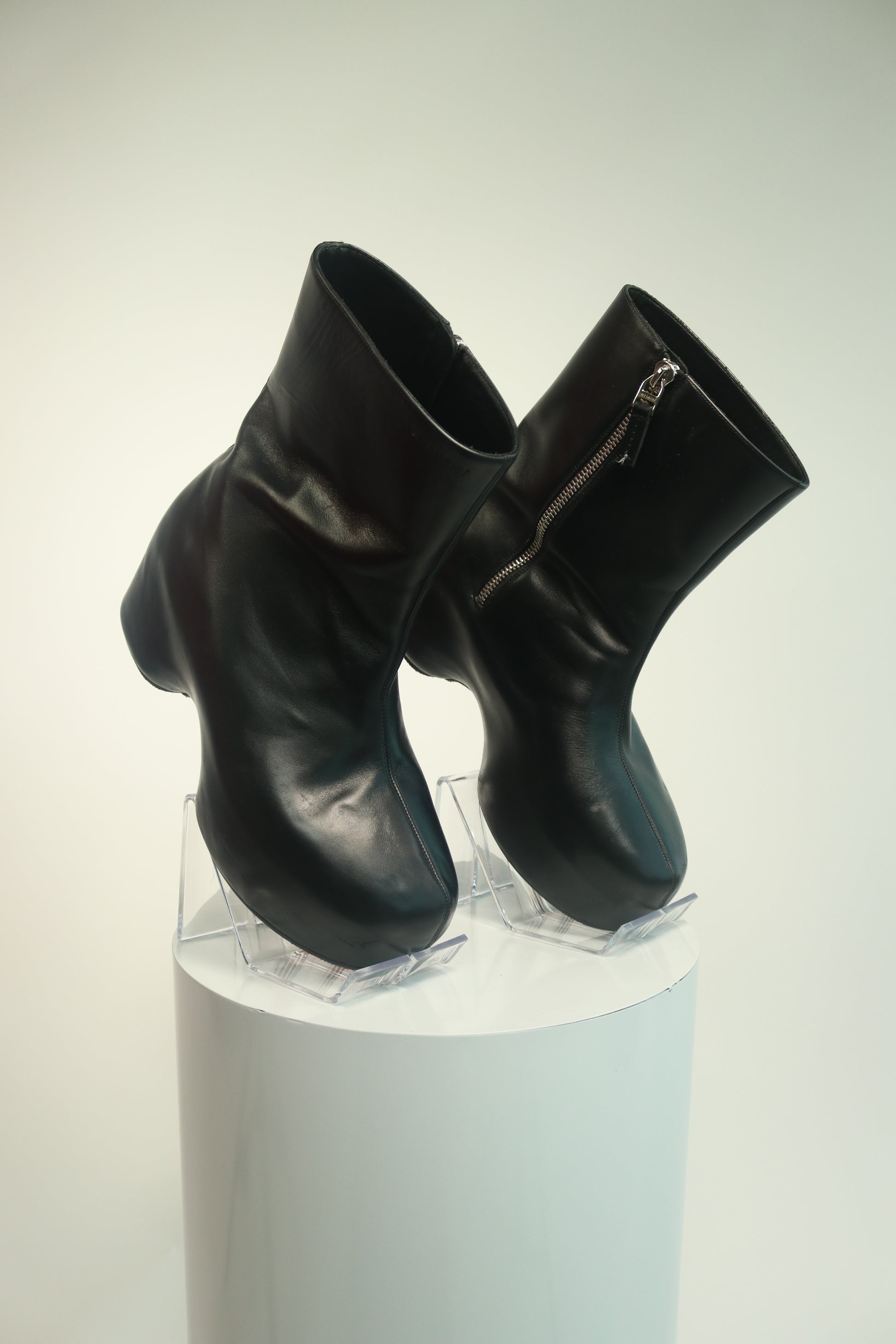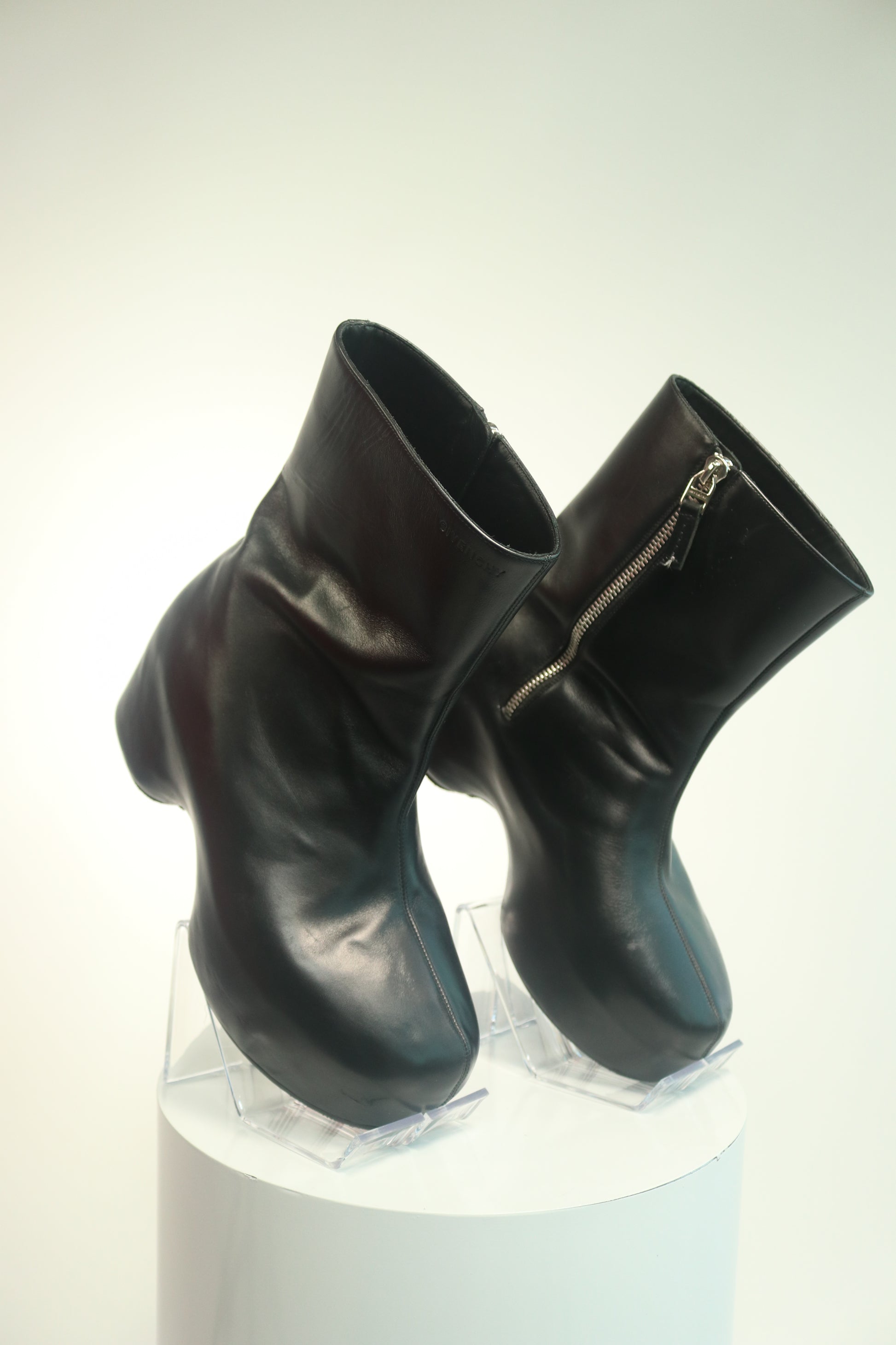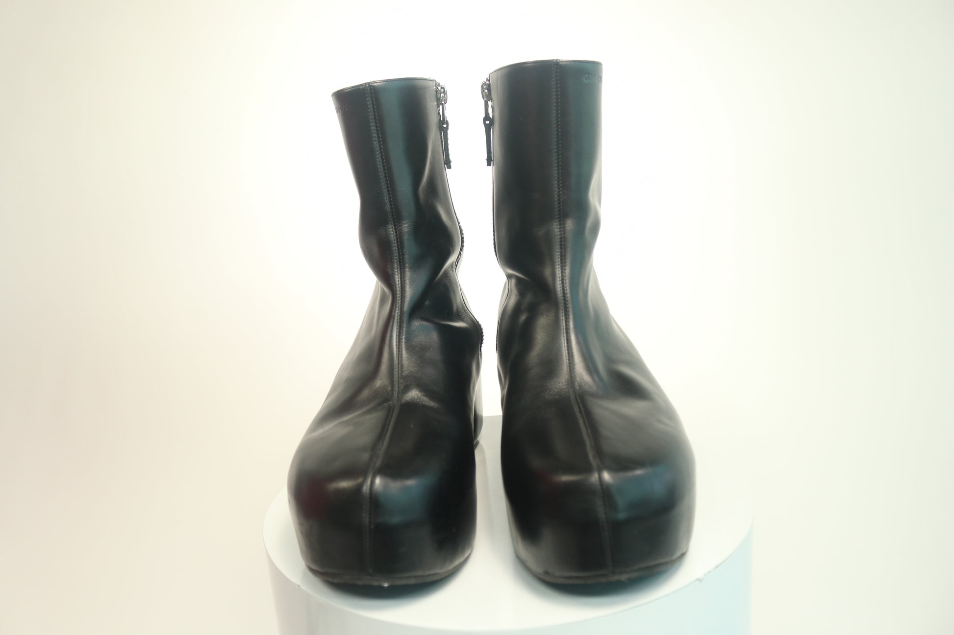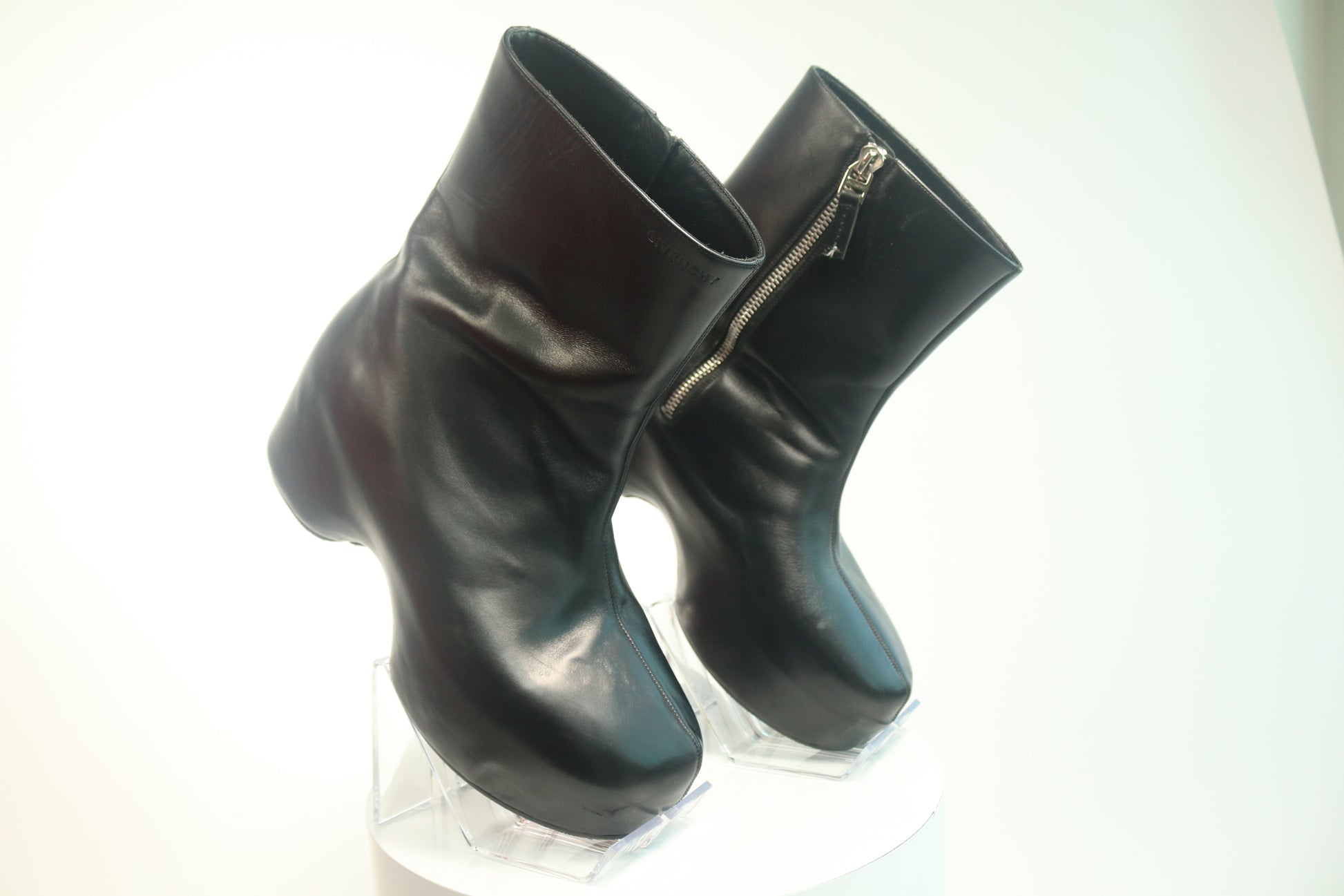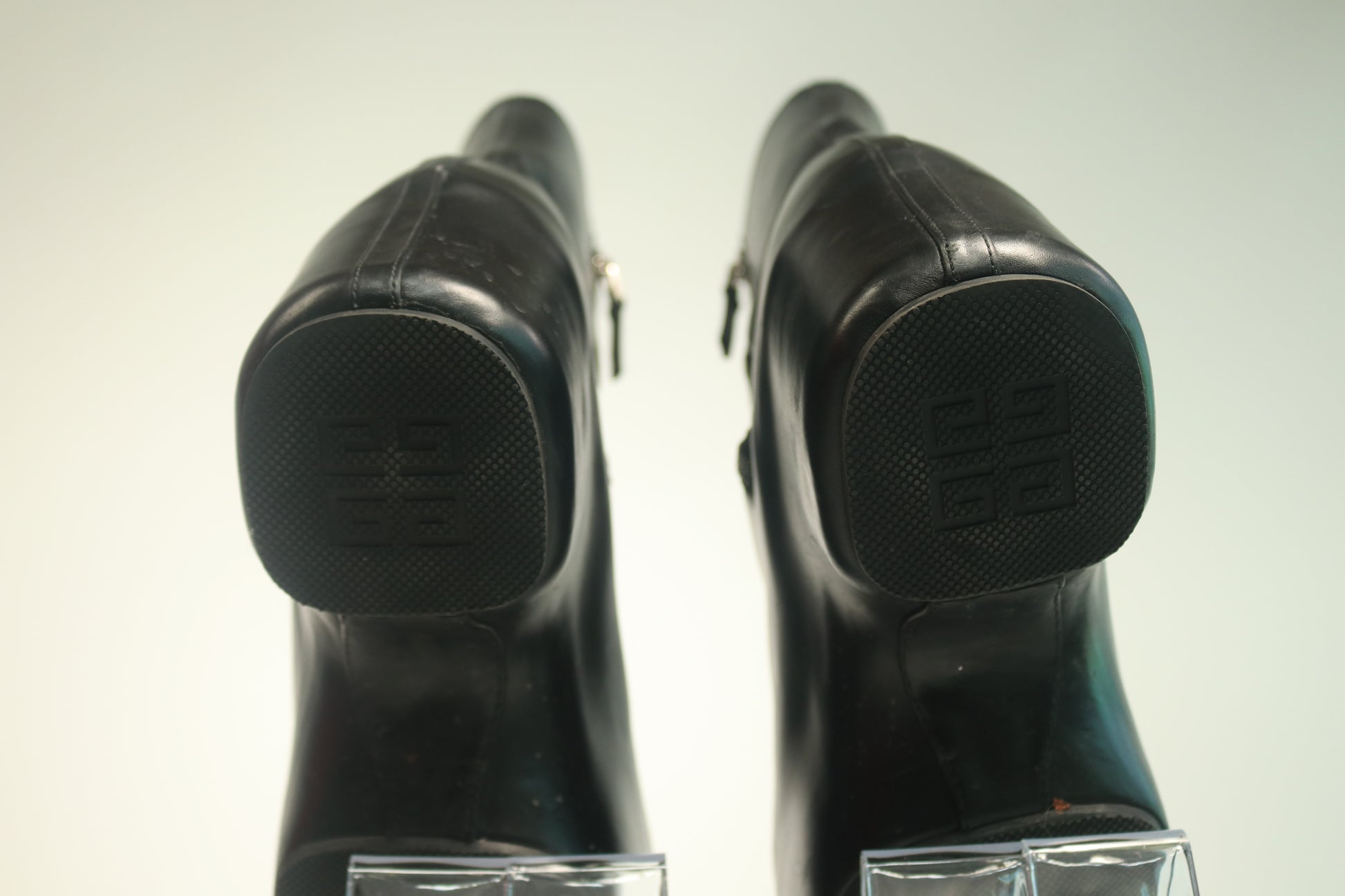 These Givenchy G Clog Leather Boots are made in Italy with a sleek black design. The stylish 45 size is perfect for men and the boots are in good condition with standard wear. Elevate your look with these high-quality, fashionable boots.