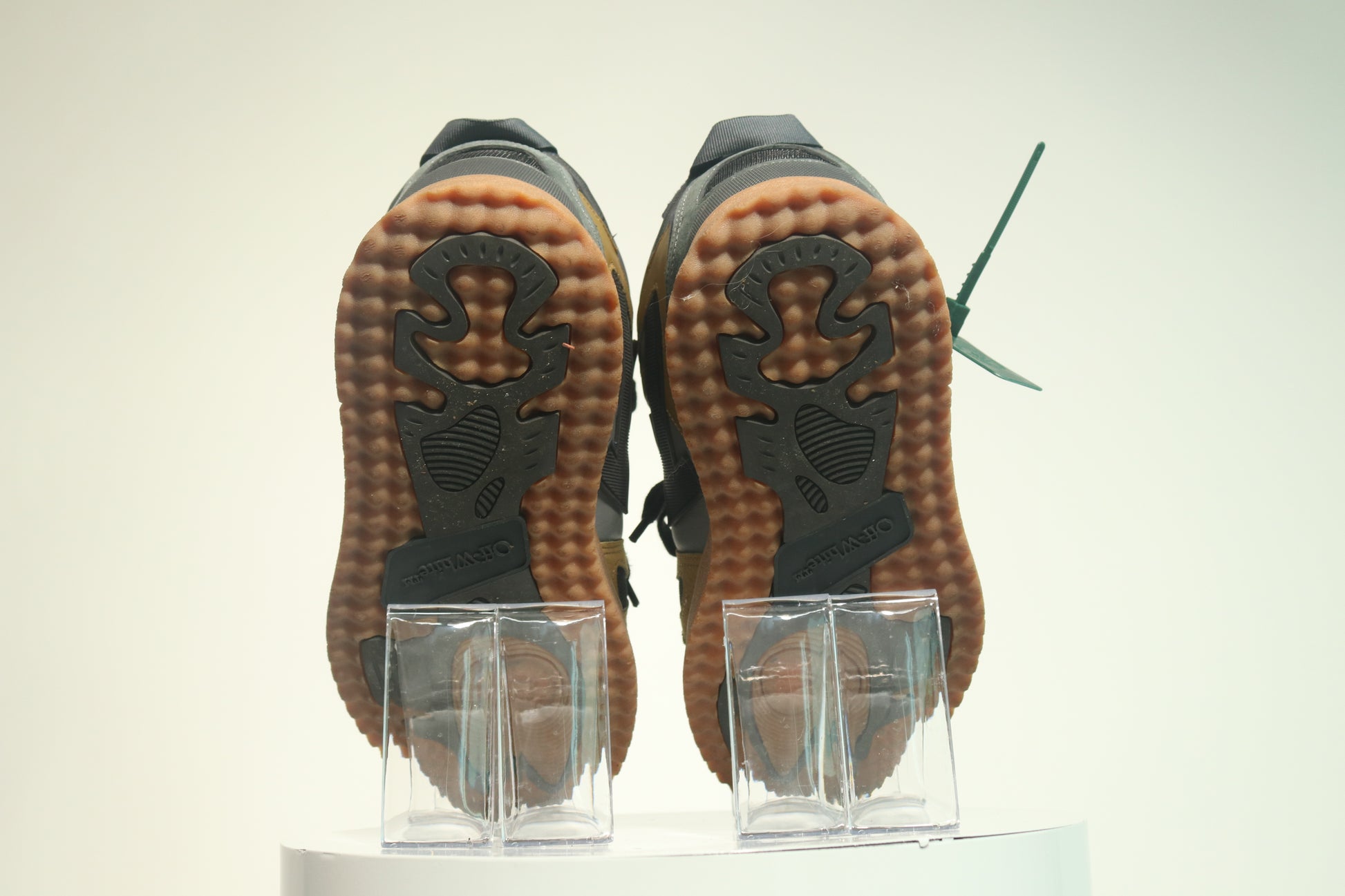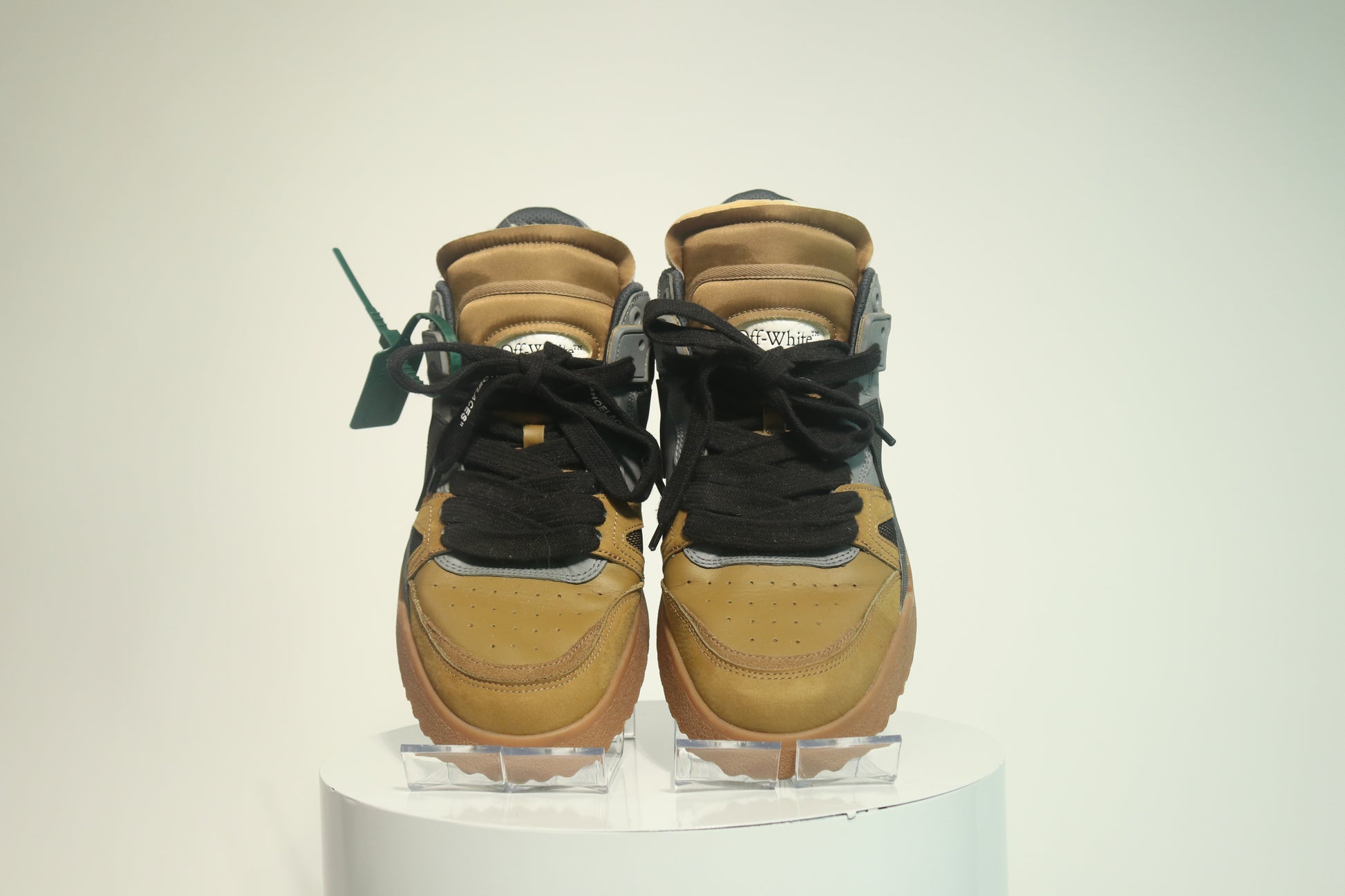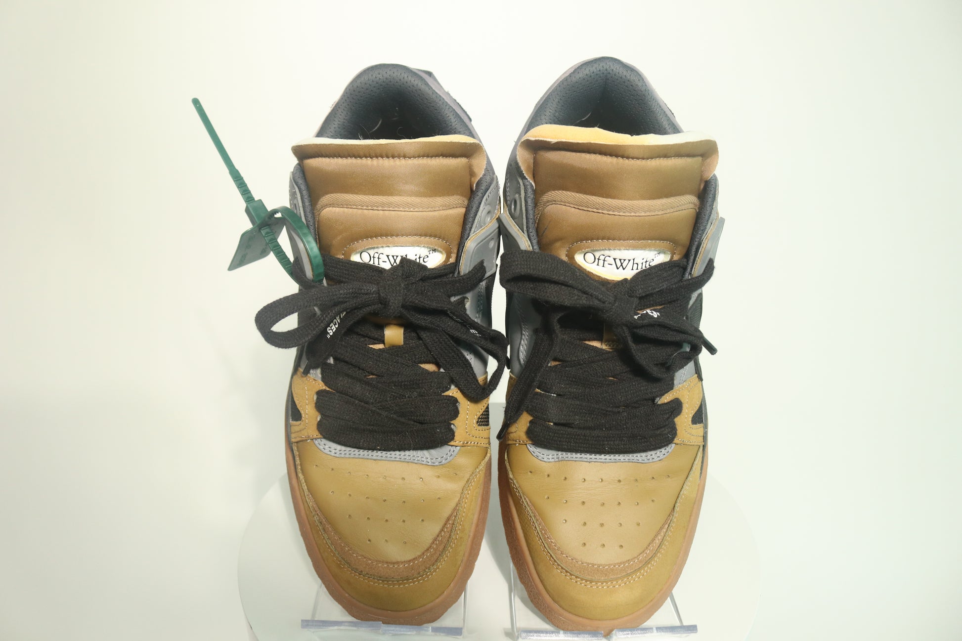 These Off-White Sponge Mid Top Sneakers are a must-have for any sneaker lover. Made in Italy, these size 46 men's shoes feature a unique multi-color design and are in great condition with only minor wear. Add a touch of style to any outfit with these statement sneakers.