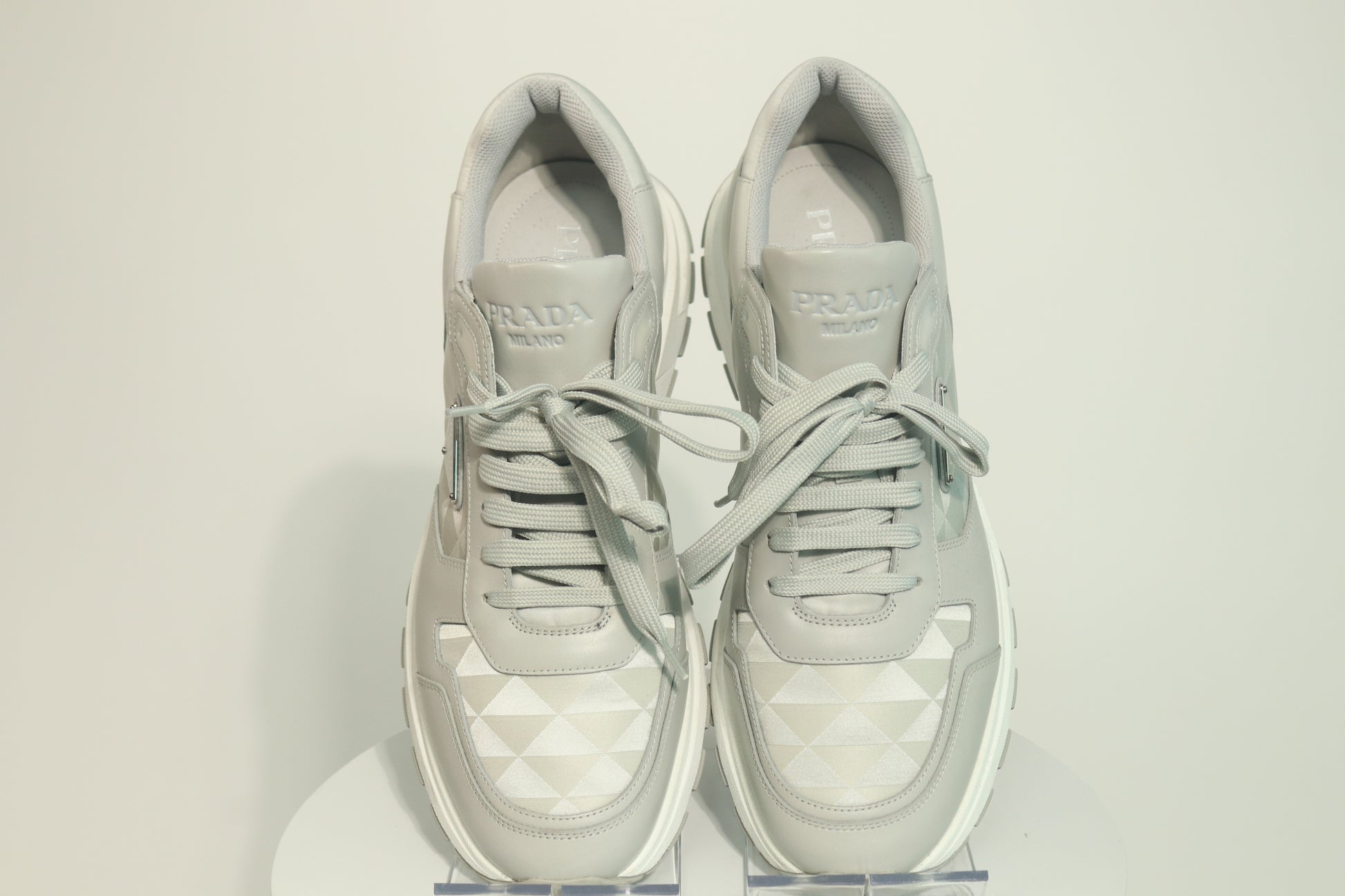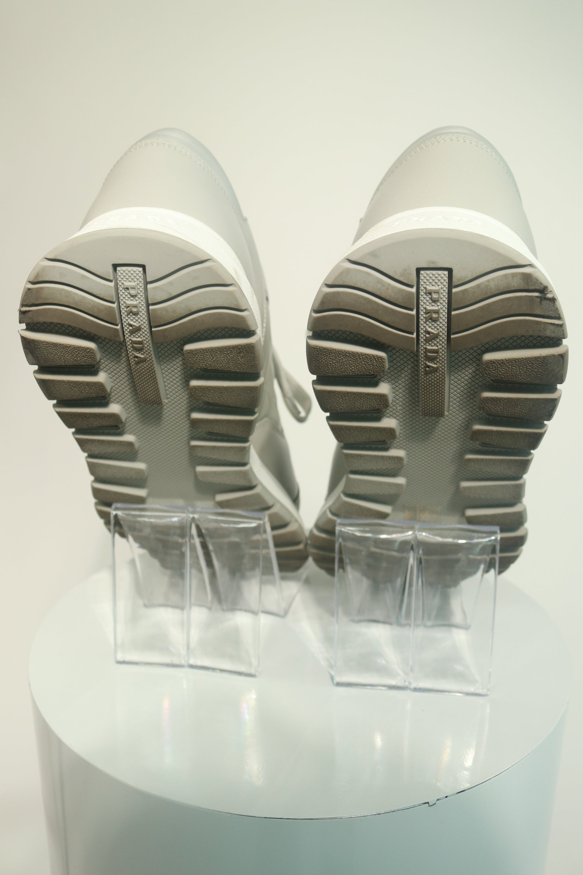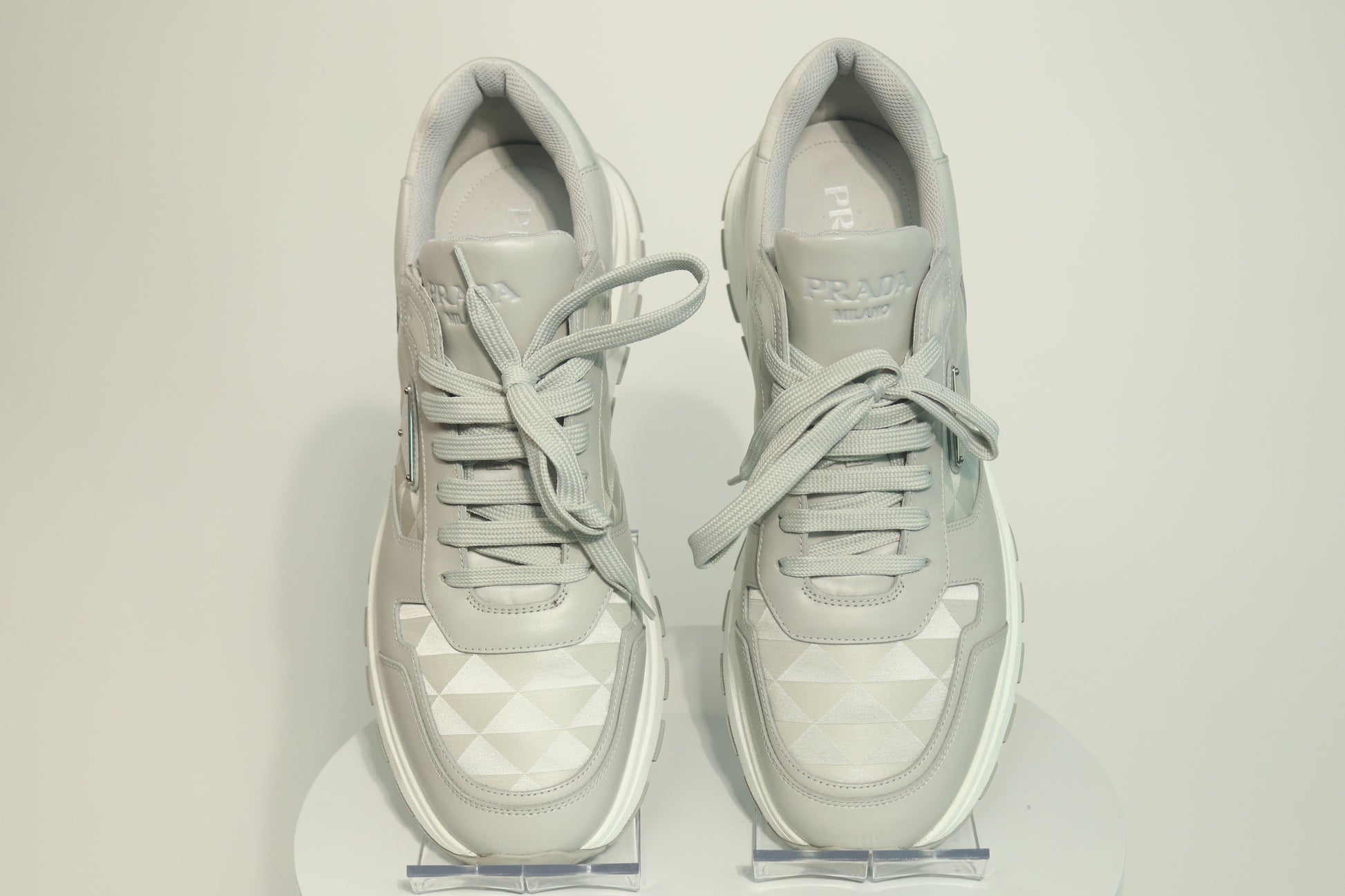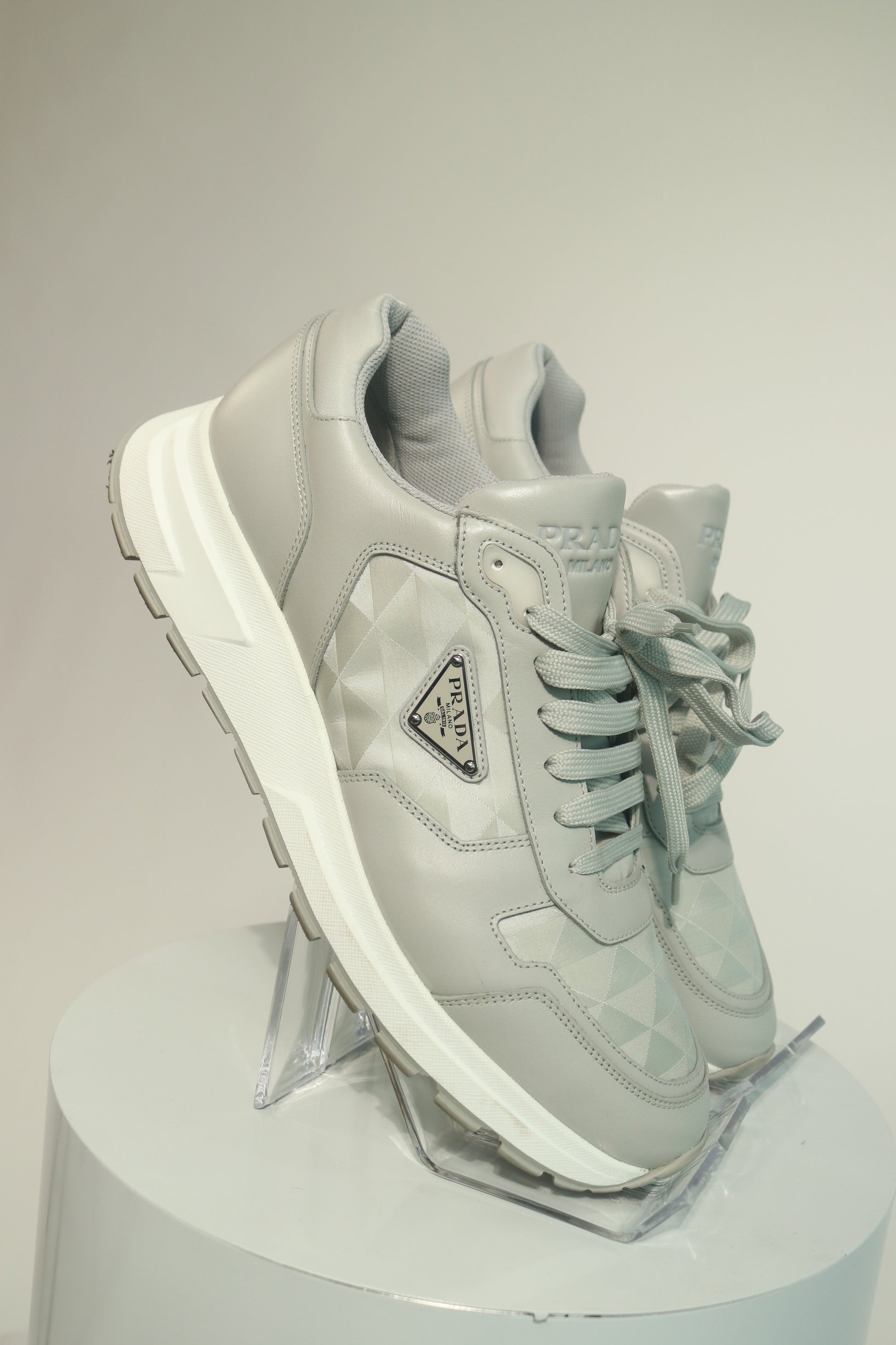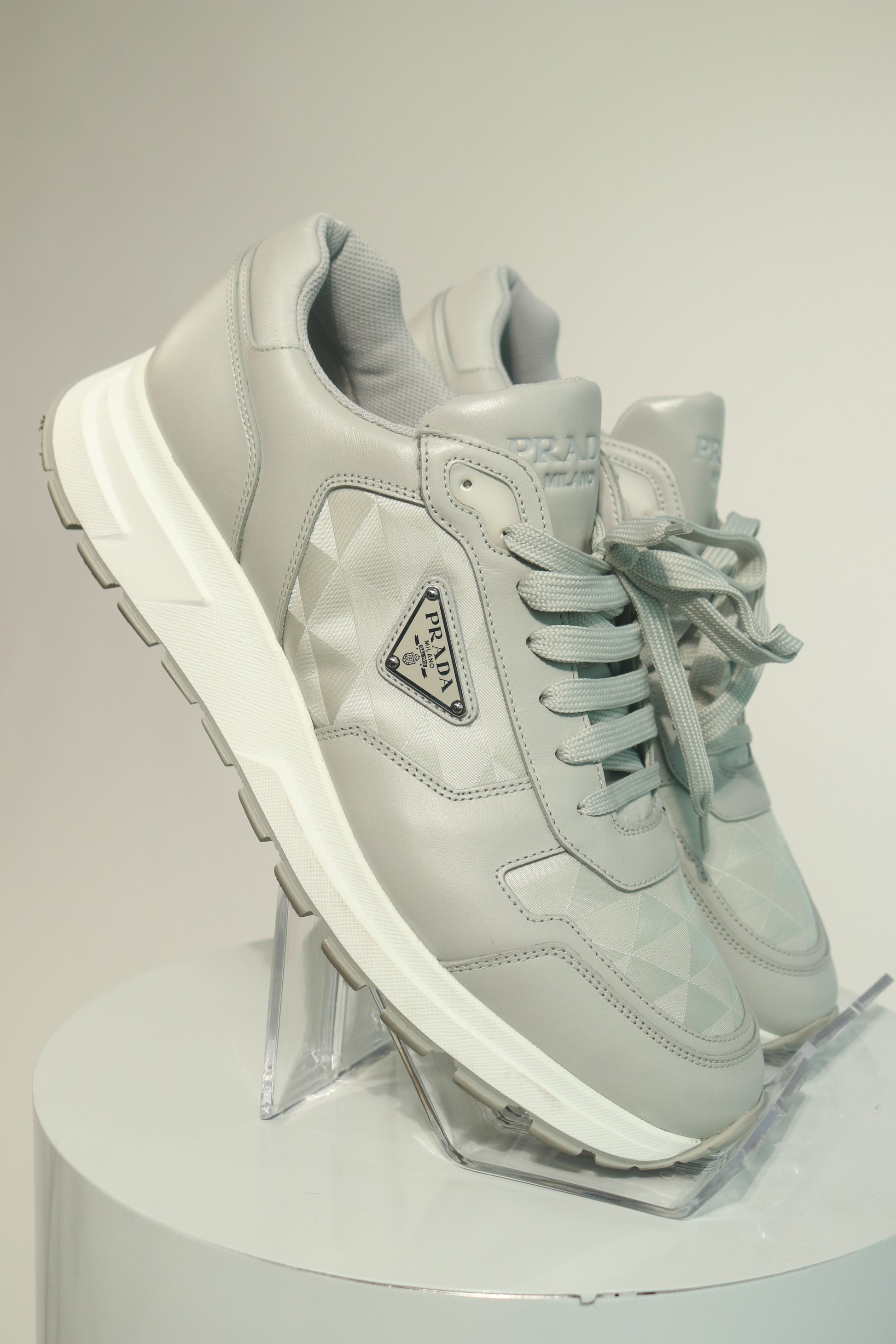 The Prada Prax Sneakers are crafted in Italy and designed for men in size 46. These shoes come in a stylish grey color with great condition and standard wear. The perfect blend of quality and comfort for the stylish man.