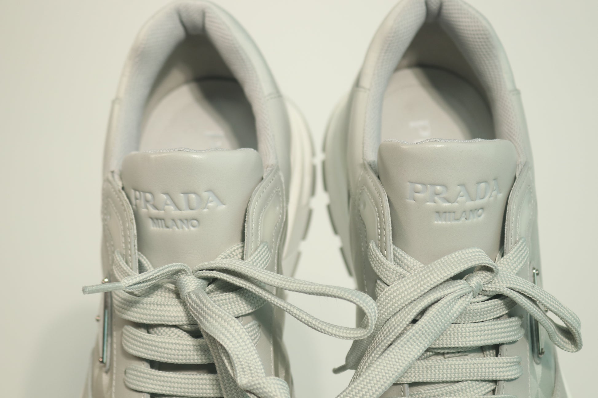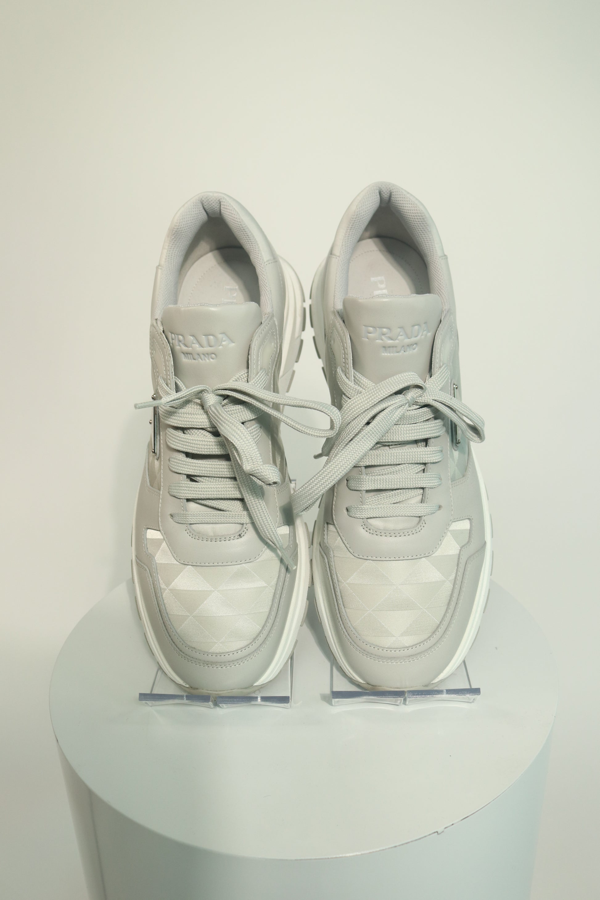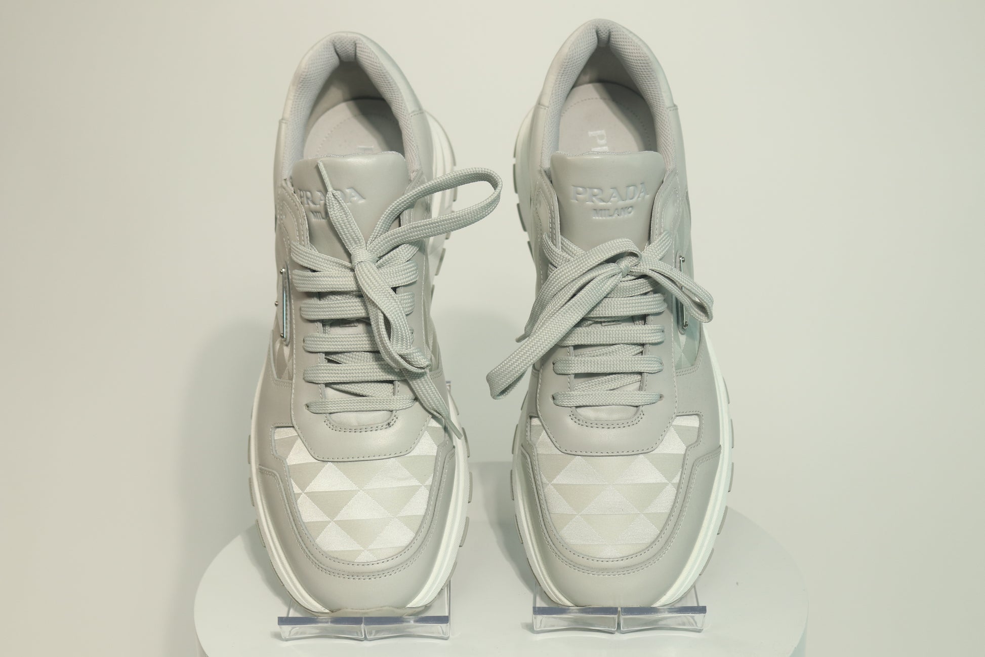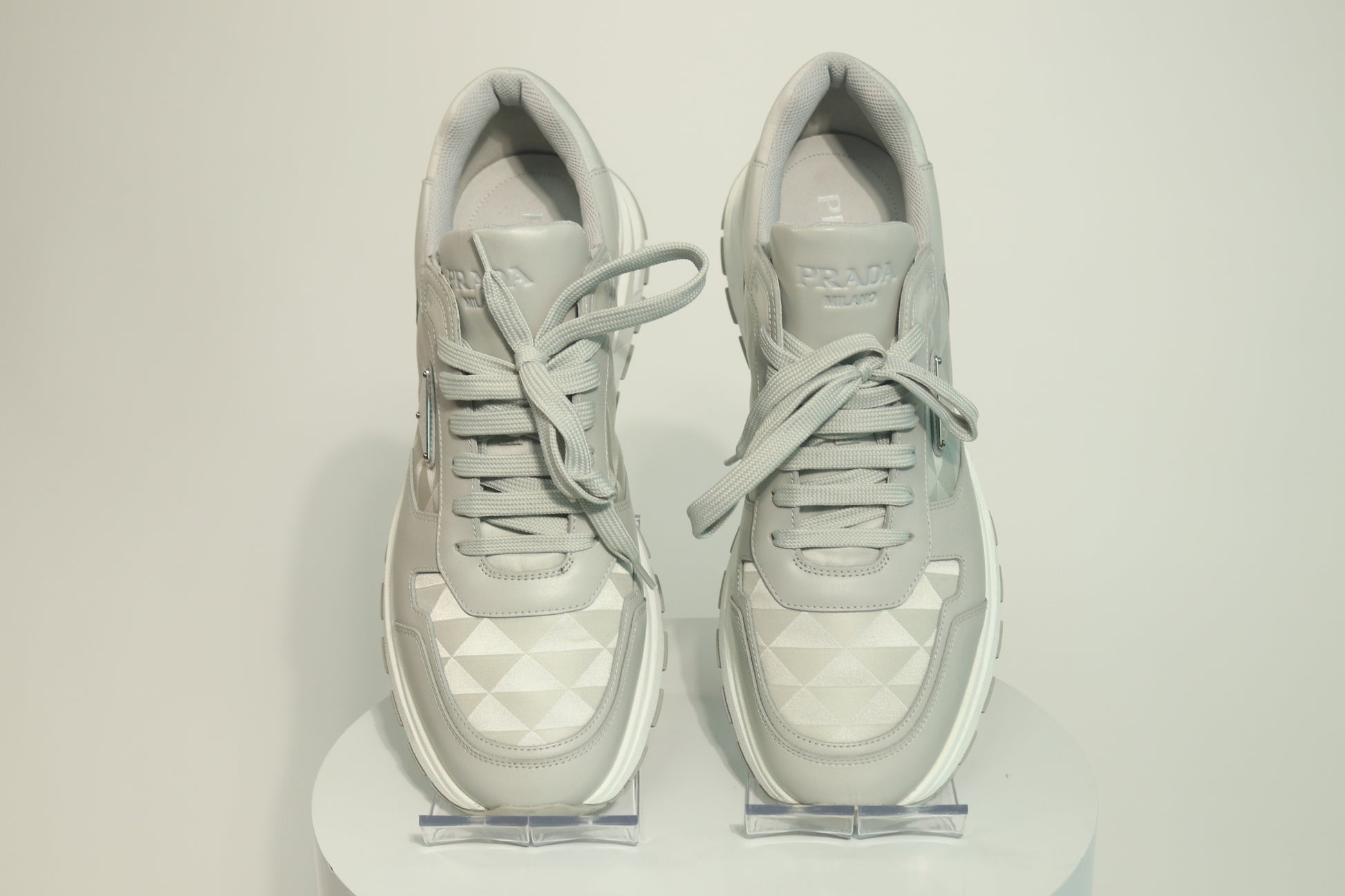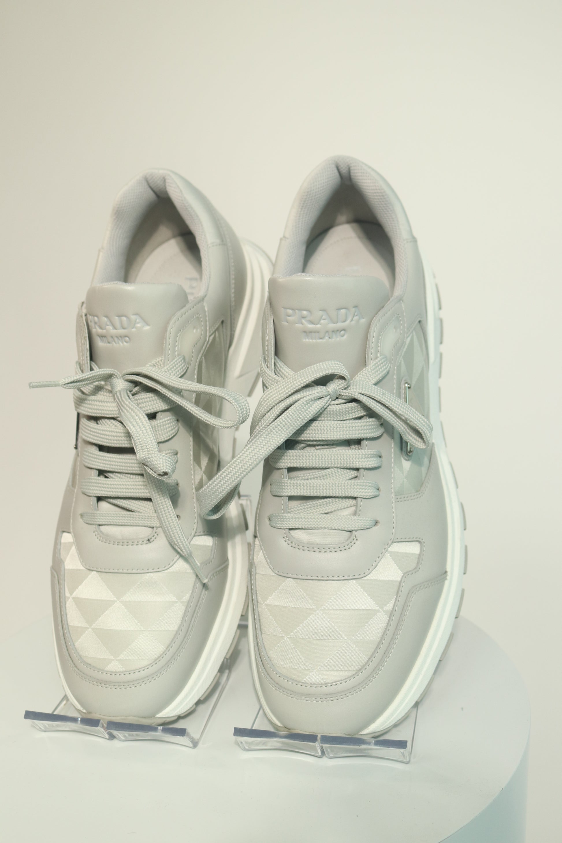 The Prada Prax Sneakers are crafted in Italy and designed for men in size 46. These shoes come in a stylish grey color with great condition and standard wear. The perfect blend of quality and comfort for the stylish man.