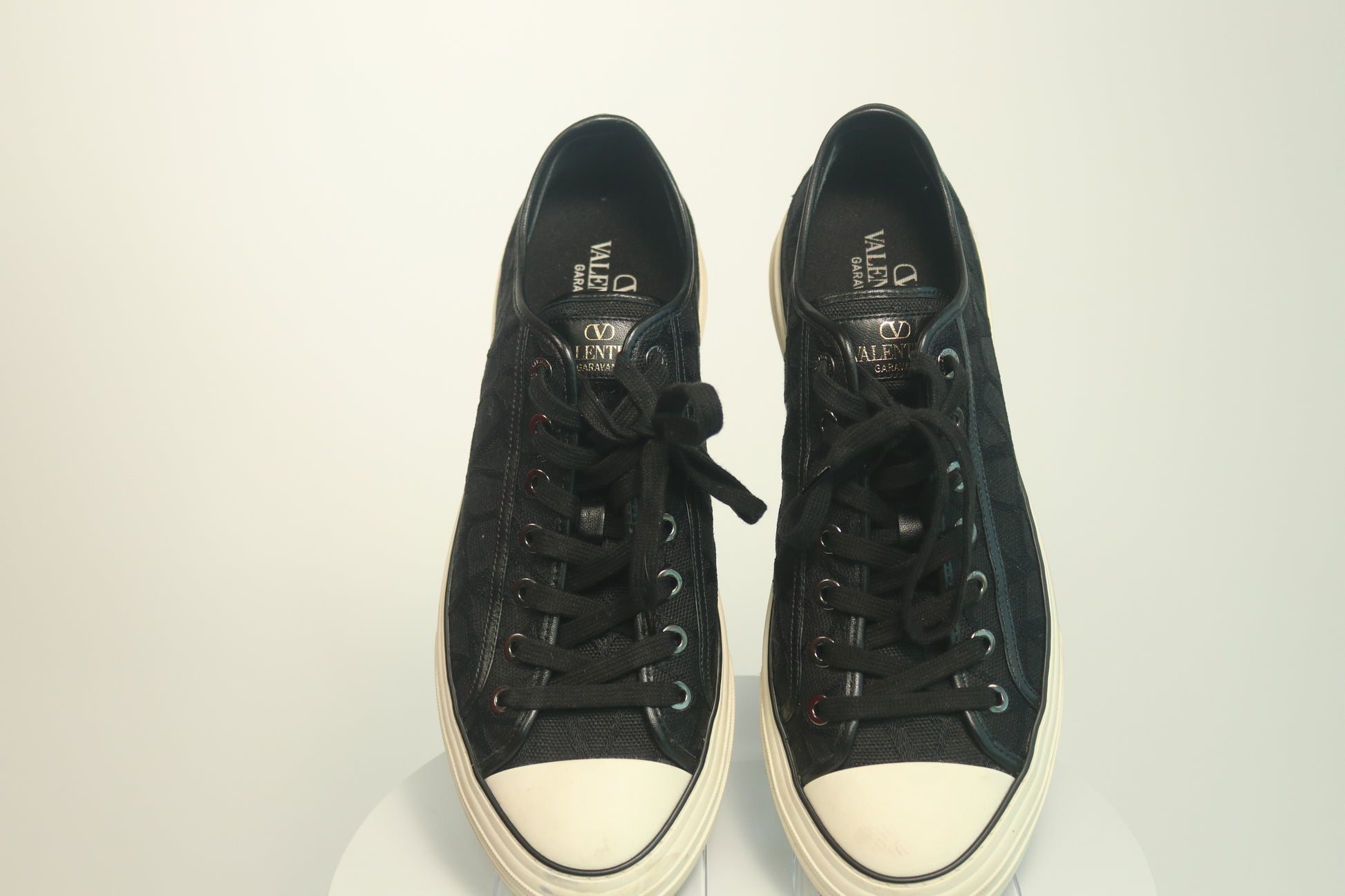 Expertly crafted in Italy, the Valentino Totaloop Sneakers are a must-have for men seeking both style and quality. With their sleek black design and standard wear, these sneakers are perfect for any occasion. Embrace the 46% of wearers who trust this brand for good condition and optimal comfort.